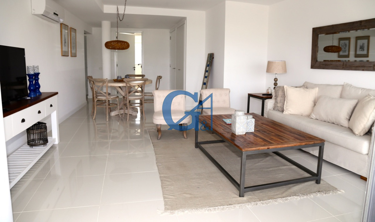 Departamento ubicado a la entrada a Manantiales, frente a playa Bikini, con 2 dormitorios y 2 baños (1 suite), vista al mar, terraza en la azotea de uso propio.
